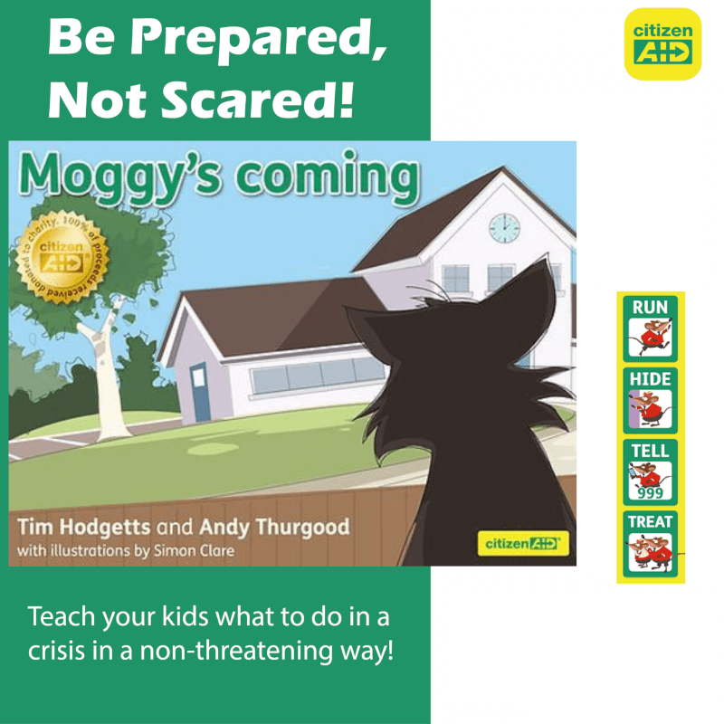Created by the citizenAID® team to help both parents and teachers emphasize the key ‘Run, Hide, Tell, Treat’ message in a non-threatening way, Moggy’s Coming has already received 100% feedback from 500 Birmingham based teachers, who piloted the story.